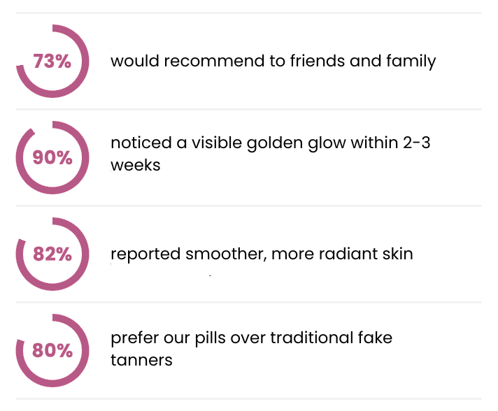 I've tried every fake tanner on the market and they all left me streaky or orange. These pills are a game changer! After 3 weeks, I had a beautiful sun-kissed glow that looked completely natural. By week 5, people were asking if I'd been on vacation. The best part? It's even all over my body, including areas you can never reach with creams. I'm never going back to fake tan!