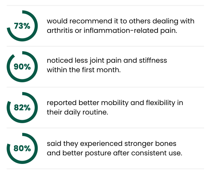 "After 2 weeks, I noticed less stiffness and more energy. I even stopped taking ibuprofen daily. This has been a game changer for me."